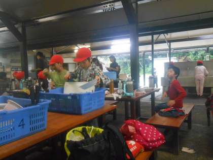 まもなく、ナイトハイクに行きます。雨もあがり、「ツバメがいたよ。」とか「カニがたくさんいる。・」と自然を満喫していました。