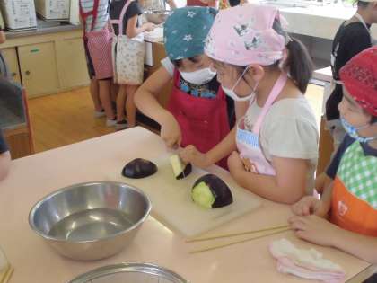 包丁は使い慣れていない子が多く,ひやひやしましたが,みんな声を掛け合って頑張っていました。