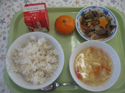 「トマトと卵のスープ」もトマトの酸味であっさりと、また冷たいみかんも