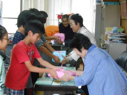 9月15日のお昼に宇多野小学校の児童会の子ども達が社会福協議会の方たちに敬老のお手紙を渡しました。社会福祉協議会の方たちはすぐにその場で町内ごとや施設ごとにわけて届ける準備をされていました。嵯峨野病院には子どもたちが直接届けに行きます。