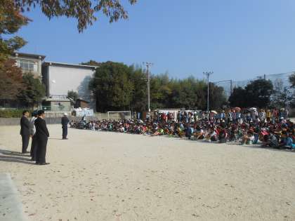 毎年9月に行っていたパトロール出発式を今年は暑さを避けるために10月に持ってきたのに、暑い日になってしまいました。地域の方に見守られ、青パトもパトロールしてくださっていますが、自分の身は自分で守れるようにしていきましょう。右京区長様はじめ警察の方もおいでいただき、リストバンドを子ども達全員にいただきました。各種団体の皆様、自治連合会の皆様、防犯の皆様、ありがとうございました。子ども110番の家を回りながら集団下校しました。