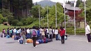 バスはすでに無事到着し,入所式も終えました。