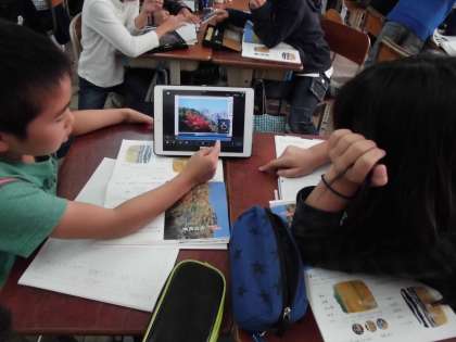 秋の風景の学習では、詩を書くための材料集めをしました。タブレットを使って秋の風景の写真を取り込んだり、その風景に合う香りや様子を言葉にしてまとめていました。