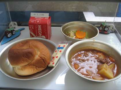 大豆とキャベツのソティは教室で配膳の後自分でマヨネーズをかけていただきます。