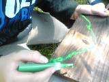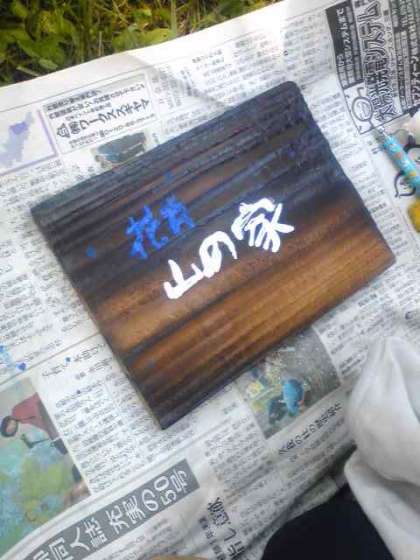 水曜日に作った焼き杉に,山の家の思い出を絵や文字でかきました。