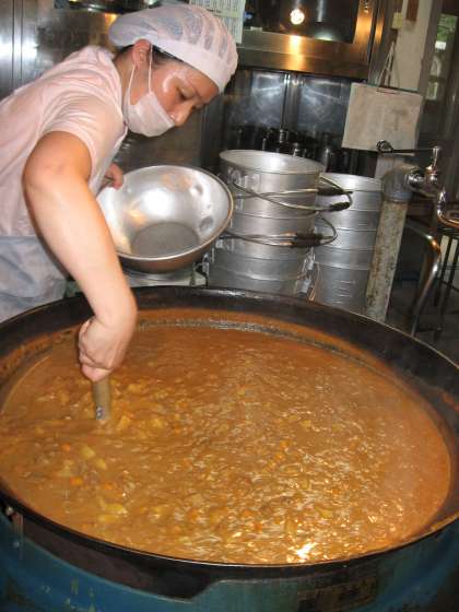 今日は「カレー」です。給食のカレーは美味しいと子ども達も言ってくれますが、そのひみつは何でしょう。いくつかありますが、一つ目はインスタントのカレールーではなく、給食室で小麦粉・バター・サラダ油・純カレー粉・粉乳でルーを作っていることです。大きななべでルーを作るのに45分以上かけて作ります。二つ目は玉ねぎをよく炒めて甘い味を出し、カレーがピリッと辛いのに甘い味がして美味しさをアップしています。他にも牛肉を炒める時にオールスパイスを振りかけたり、煮込む時にローリエを入れたり、仕上げにフルーツチャツネを加えたり色々工夫しています。今日は1年生も「ごはん」も「カレー」も「ひじきのソティ」も完食でした。