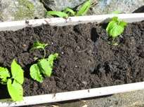 プランターに土や肥料を入れて,ツルレイシの苗を植えました。