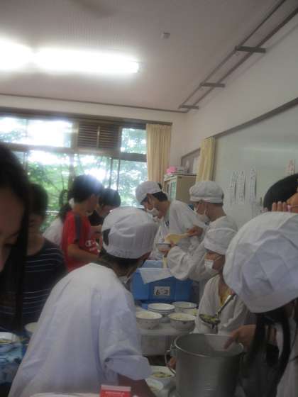 かきたま汁は好きなお汁です。暑さに負けない食欲旺盛な子ども達です。