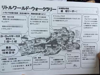 各グループ、ウォークラリー地図を持ってリトルワールドを回ります。