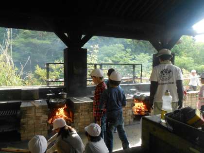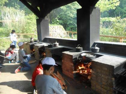 かまどくみからご飯を炊くための準備やカレーの野菜を切る係りなどみんな手際よくできました。とても上手にできあがりました。
