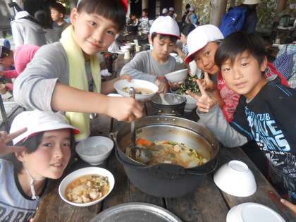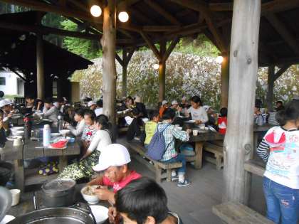 2日目の夕飯は鶏すきやき風煮です。みんな、自分たちで協力して作りました。