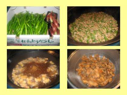 今日は夏野菜の「伏見唐辛子」と「みょうが」を使った献立です。