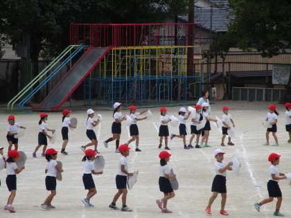 運動場からおはやしの音が聞こえてきます。かわいいかけ声もまとまってきました。