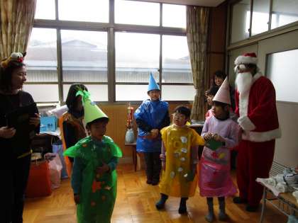 12月22日に校長室にかわいいお客さんが来てくれました。とてもすてきなプレゼントをいただきました。お礼に私もくまのパペットをプレゼントしました。
