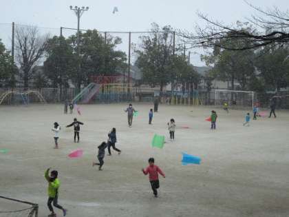 たこが揚がってきました!子どもは走り回って元気です。