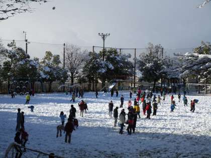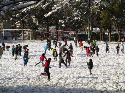 14日のおもちつきから降り出した雪が何日も降り続き、宇多野は銀世界になっていました。ようやく今日は溶けていよいよ明日からは運動場も使えそうです。いつもは見られない雪だるまもできていました。