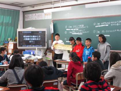 6年生はケータイについての学習と市内めぐりの発表などがありました。市内めぐりの発表ではタブレットと電子黒板をつないで発表にいかしていました。