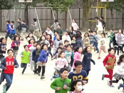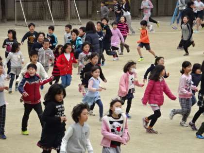 業間マラソンが始まって2週目になります。みんな楽しくケガなくがんばっています。走っているときに倒してしまったコーンをすぐに他の子どもが直してくれている姿が見られました。