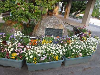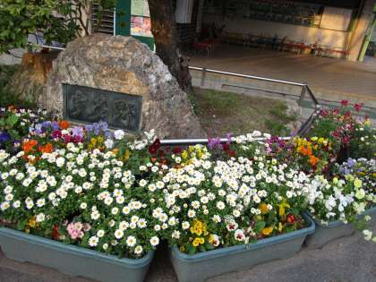 ピロティーのプランターも学校への坂道も花いっぱいの宇多野です。