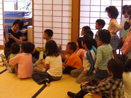 10月5日昼休み、ふれあいの間で、図書ボランティアの方による読み聞かせがありました。低学年の子ども達を中心にして約20名集まりました。じっくり語りかけるように絵本を読んでくださっているのを、子ども達は耳を澄ませて聞いていました。