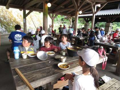 今年もPTA会長さんをはじめ、おやじの会の方がお手伝いに野外炊事に来てくださいました。本当にありがとうございました。