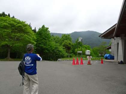 一緒に登ってくださる山の家の先生からお話を聞き,本館から見えるあの山のてっぺんまで行くんだよと説明を受けました。