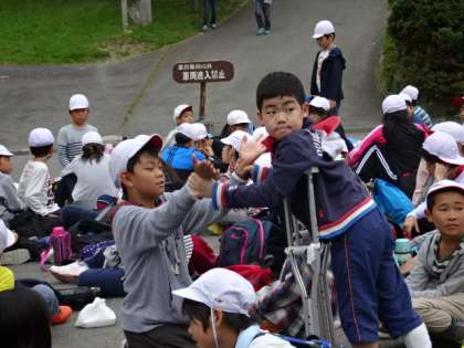 子どもたち,本当に頑張りました。自分の足で900mの登山を達成できました。