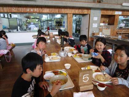今日のテーマは「友情」です。午後から選択プログラムでキャンプファイヤーになります。おいしくおかわりもしてしっかり食べました。