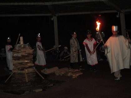 今年もボランティアで火の神に来ていただきました。とてもおごそかな火の神で迫力がありました。火の子の子ども達もこの3日間を振り返って話していました。
