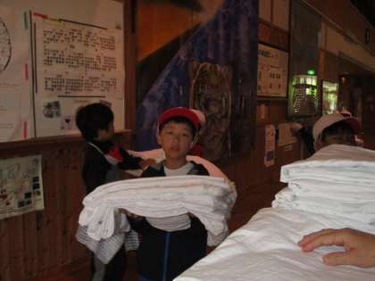 いよいよ最後の日です。朝6時に起きて部屋の片づけをして、シーツをまず返しに来ました。今年のシーツは百点満点で、一人もやり直しがありませんでした。そして朝食です。この後、魚づかみをして昼食後 退所式になります。今の予想では3時半ごろに教会前に帰る予定です。くわしくはまたお知らせします。