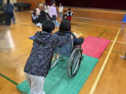 本日、総合の学習で「車いす体験」を行いました。