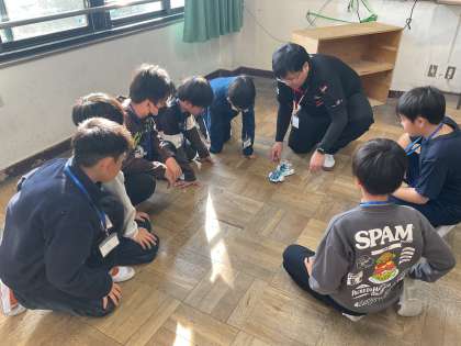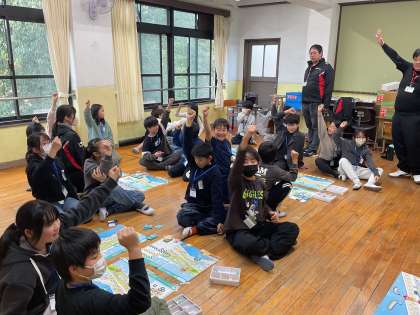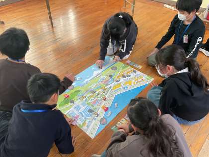 自動車メーカーのトヨタの方に来ていただいて“カーボンニュートラル授業”をしました。クイズを解きながら分かりやすくカーボンニュートラルな社会について学んでいきました。実際に水素でミニカーが走る実験も見ることができ、最後にカードゲームでカーボンニュートラルをより深く学べました。自分たちにできる地球にやさしいことが1つでも出来たらいいなと思います。