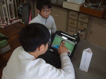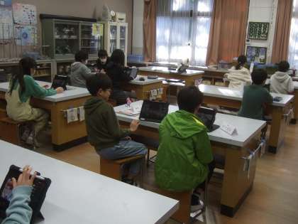 外国語の時間に、御室小学校、花園小学校、宇多野小学校の3校で、「双ヶ丘サミット」を開催しました。外国語の教科書に「Save the animals.(動物を守ろう)」という単元があります。少し古いのですが「2015京都府レッドデータリスト」の中から動物を選び、それぞれの動物たちが直面する問題、私たちに何ができるのか、などについて話し合いをしました。