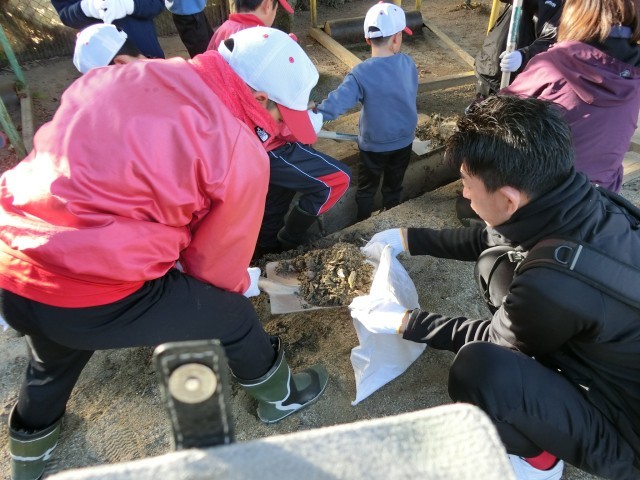 1月18日(日)宇多野体育振興会の皆様に、運動場や校舎周りの大掃除をしていただきました。