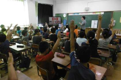 新しく来られたALTの先生の自己紹介をクイズ形式で聞いたり,ゲームをしたりしました。