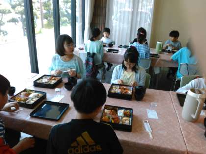 一日目の昼食です。お腹がすいて食欲もいつも以上です。みんな元気です。