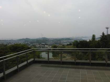 修学旅行2日目を迎えました。空は霞がかかってますが心地よい朝を迎えました。よく眠れた人,あまり寝られなかった人がいるようですが,みんな元気に朝食です。
