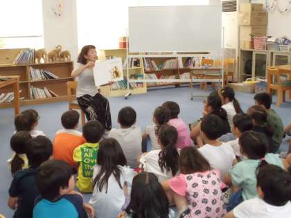 あじさい読書週間のイベントのひとつ,読み聞かせの先生に来ていただきました。