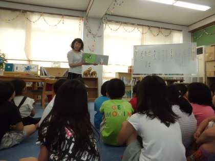 あじさい読書週間のイベントのひとつ,読み聞かせの先生に来ていただきました。