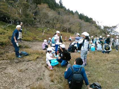 アップダウンを繰返し進んでいきました。お互いの励ましの声に元気をもらいながら一歩一歩進んでいきますが,途中の景色や山の様子を見たり,またきれいな川の水をこえながら進むと自然と楽しく元気も出てきます。途中休憩もいれながら進んでいくととても見晴らしのいい景色が・・。