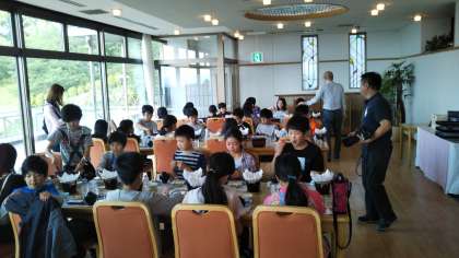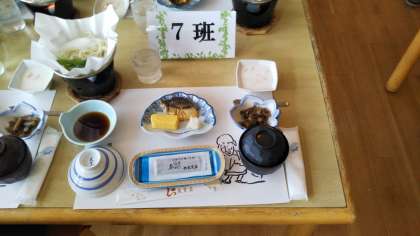 修学旅行2日目の朝食の様子です。眠そうな顔をしている人もいますが,しっかり食べて,今日の活動をがんばりましょう。天気は晴れのようです。よかったですね。