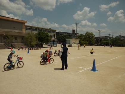 2年生は,正しい自転車の乗り方を教えていただきました。