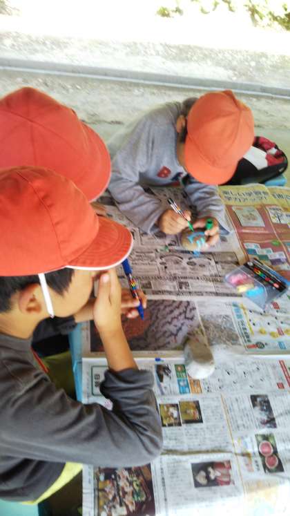 午前中の磯観察で拾ってきた石にペインティングをしました。ひとりひとりの思い出が詰まった作品ができていました。