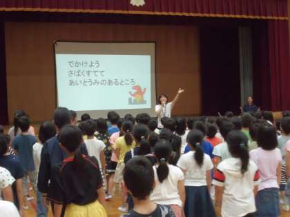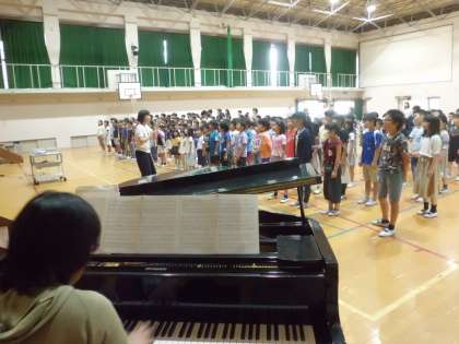 児童朝会のあと,はなぞのメロディーの練習をしました。
