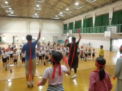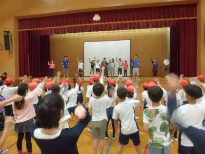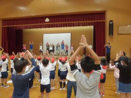 5・6年の応援係が,応援の仕方を元気に教えました。