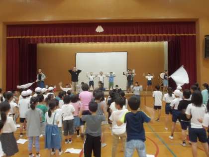 応援歌や応援の仕方を,5・6年の応援係が教えていました。