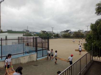 曇り空でしたが5・6年生が一生懸命準備をしていました。