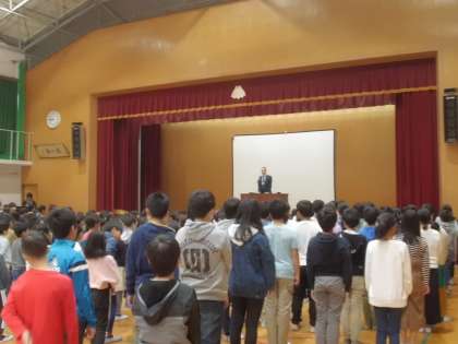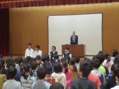チャレンジ体験(職業体験)に来ている中学生の紹介もありました。4日間,学校の仕事を学びます。