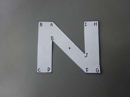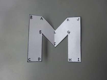 その時,写真のように各点にアルファベットを書いておくと,折った時や回転した時に対応する点がわかりやすくなりますよ。いろいろと工夫しながら楽しく勉強してみてくださいね。