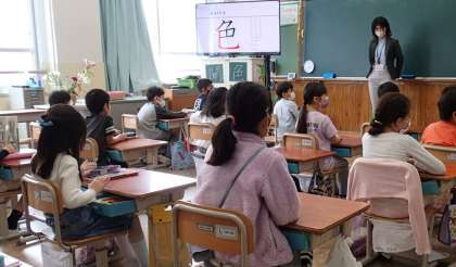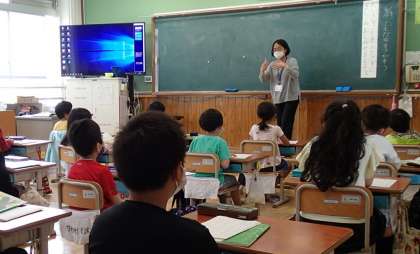 写真は2年生の授業の様子です。みんな一生懸命先生の話を聞いて,がんばって授業に参加していました。